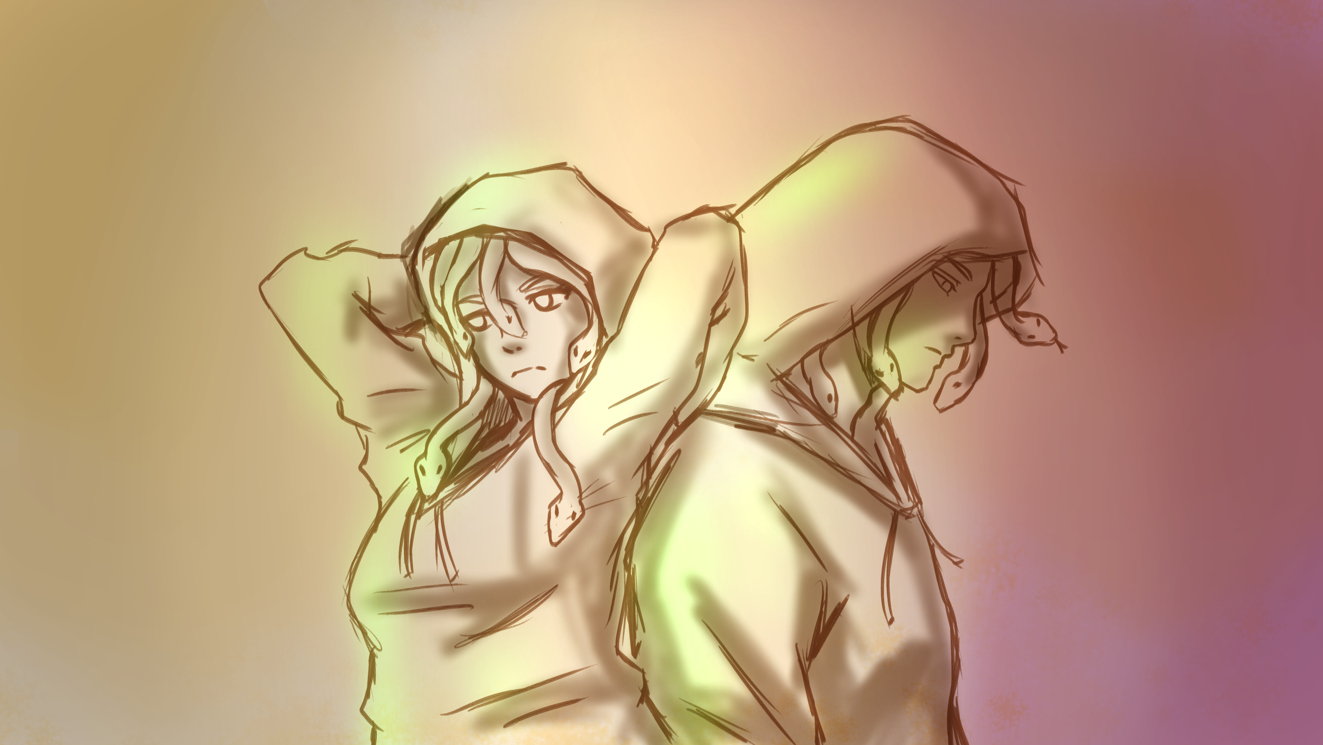 The Gorgon are mostly human, the only problem is their hair, a head of snakes. For normal humans their hair looks and acts normal. For those who’ve been to or seen the ‘Other’ this does not work and the Gorgons hair is revealed to them. A mass of writing small snakes that all seem to be sentient in their own right. Gorgon might even talk to their snakes at times for advice, this snake hair however is a completely other organism that has simply rooted itself in the Gorgon and they have a symbiotic relationship. If the Gorgon dies then the snake hair dies too.